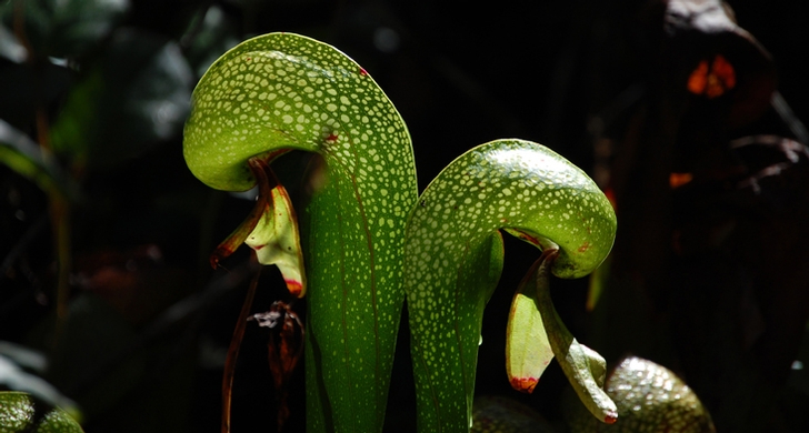The Darlingtonia State Natural Site is about 5 miles (8 kms) north of Florence, on the Pacific Coast Highway. It gets its strange name from a strange plant, the Darlingtonia californica. Also known as the California pitcher plant, cobra lily, or cobra plant, it's native to northern California and Oregon and is carnivorous.